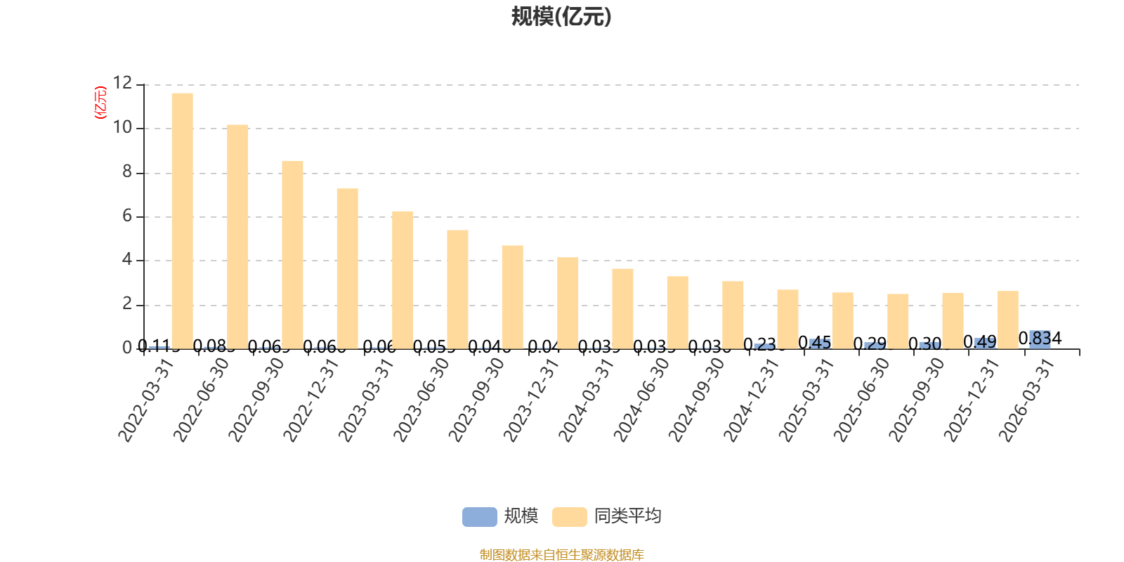AI基金同泰同欣混合A(013657)披露2026年一季报,第一季度基金利润17.17万元,加权平均基金份额本期利润0.0023元。报告期内,基金净值增长率为0.79%,截至一季度末,基金规模为8338.51万元。