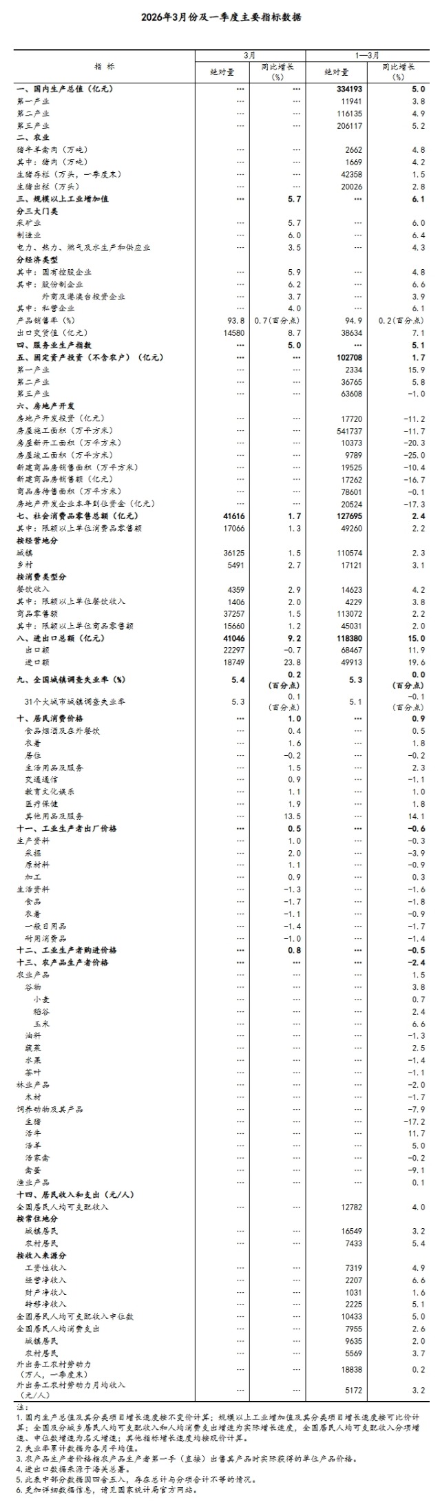 (1)国内生产总值及其分类项目增长速度按不变价计算,规模以上工业增加值及其分类项目增长速度按可比价计算,均为实际增长速度;其他指标除特殊说明外,按现价计算,为名义增长速度。