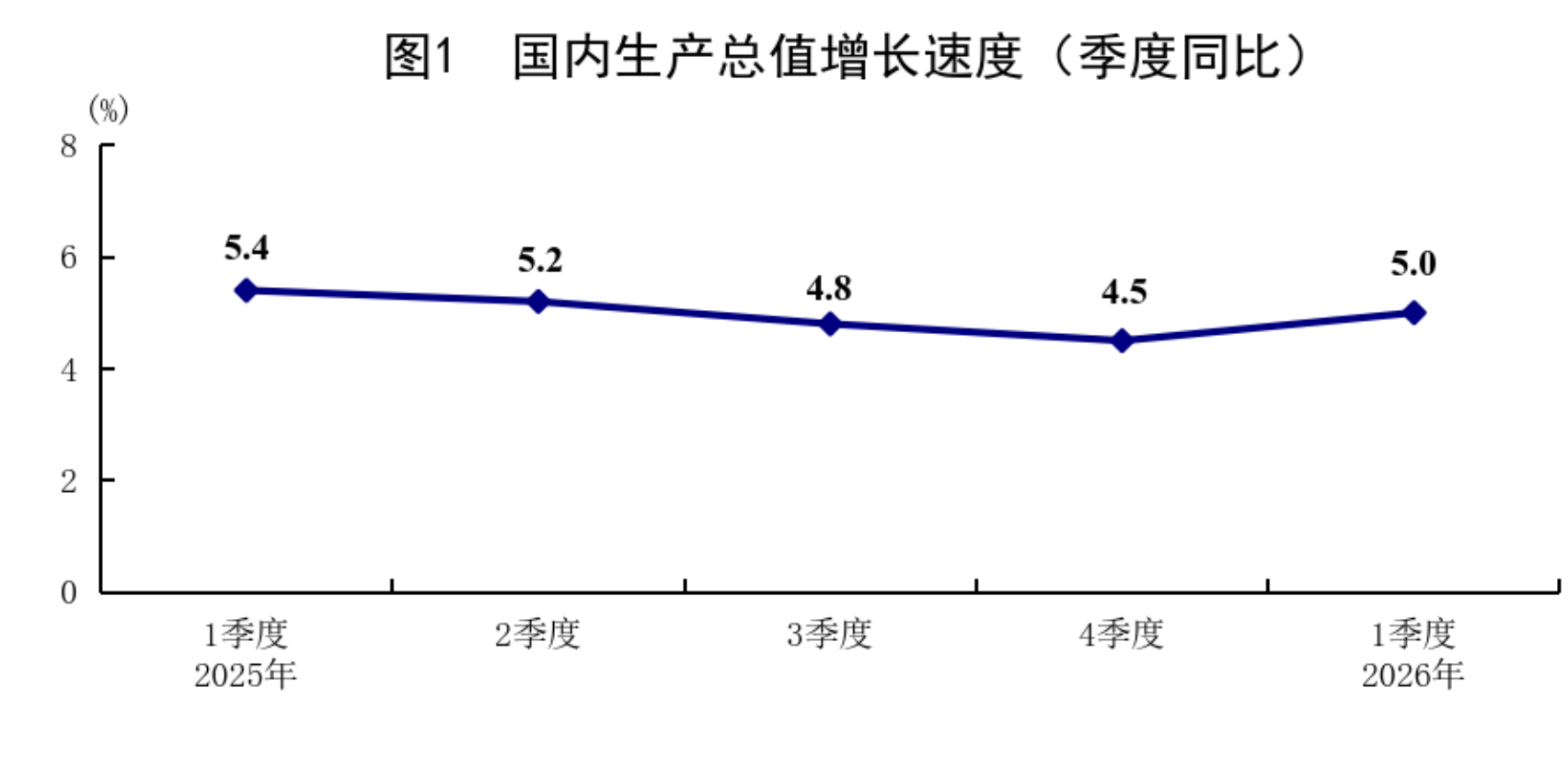2025年各季度及2026年一季度GDP环比增速分别为1.1%、1.1%、1.1%、1.2%和1.3%。