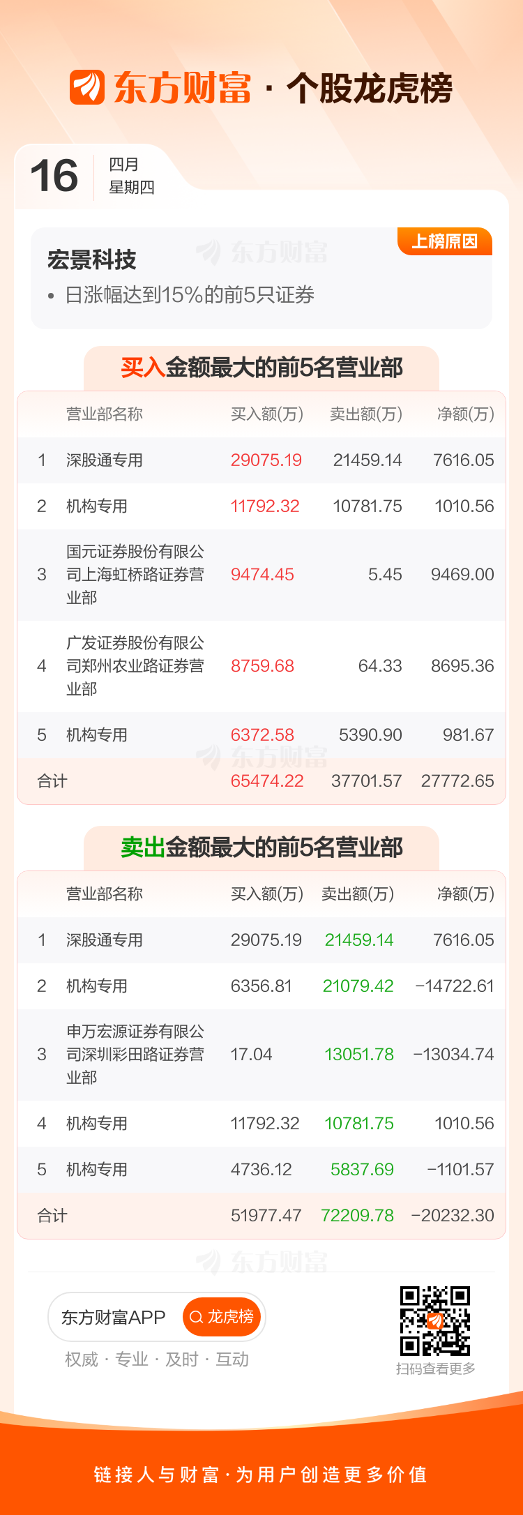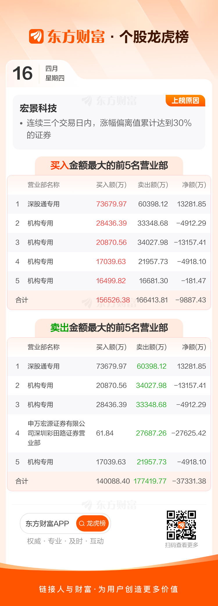 宏景科技(301396)龙虎榜数据(04-16)