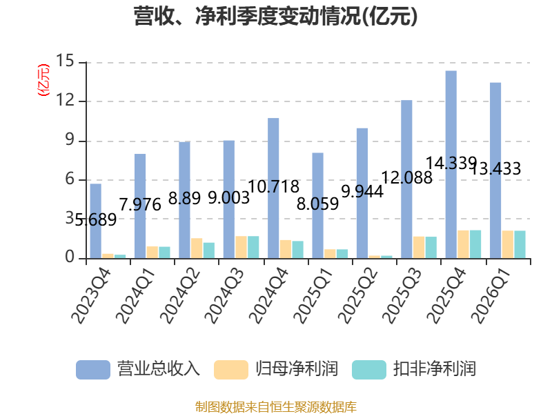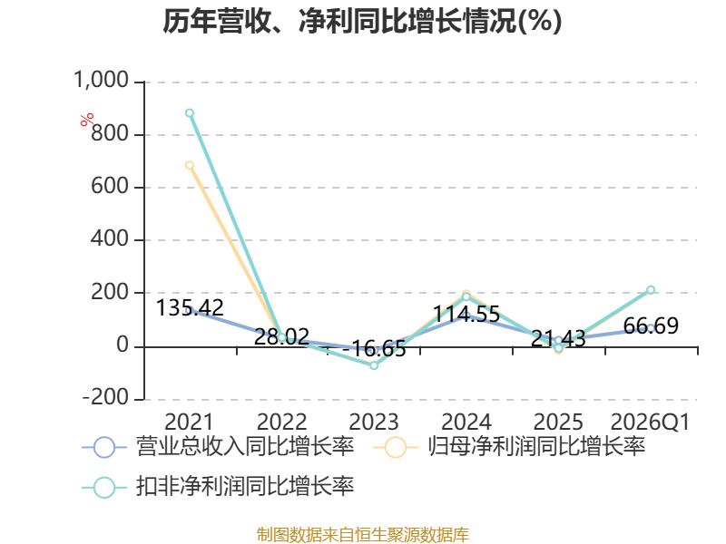 中证智能财讯海通发展(603162)4月17日披露2026年第一季度报告。公司实现营业总收入13.43亿元,同比增长66.69%;归母净利润2.1亿元,同比增长211.06%;扣非净利润2.1亿元,同比增长212.55%;经营活动产生的现金流量净额为3.78亿元,同比增长99.97%;报告期内,海通发展基本每股收益为0.23元,加权平均净资产收益率为4.59%。