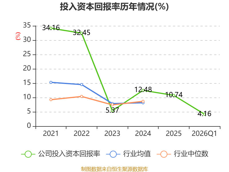 盈利能力方面, 2026年一季度公司加权平均净资产收益率为4.59%,同比上升2.96个百分点。公司2026年第一季度投入资本回报率为4.16%,较上年同期上升2.49个百分点。