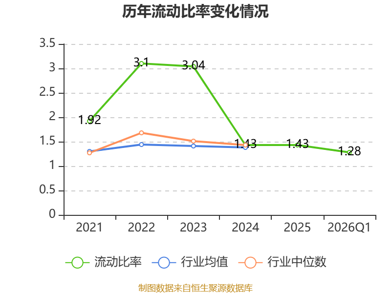 2026年第一季度,公司流动比率为1.28,速动比率为1.12。