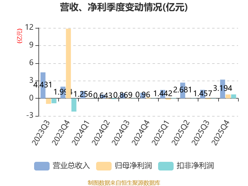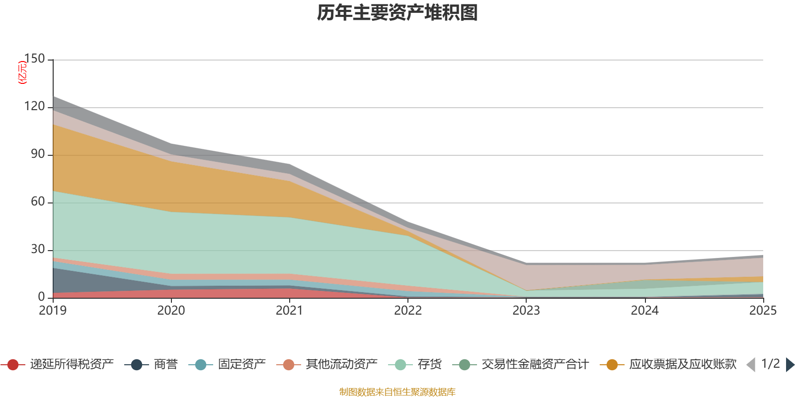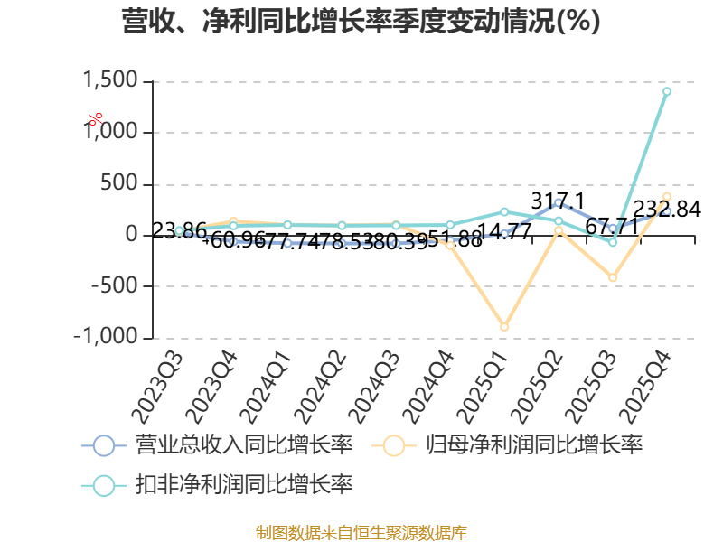 资产重大变化方面,截至2025年末,公司交易性金融资产合计较上年末减少99.06%,占公司总资产比重下降24.7个百分点;应收票据及应收账款较上年末增加938.19%,占公司总资产比重上升11.57个百分点;商誉较上年末增加2054.01%,占公司总资产比重上升6.65个百分点;存货较上年末增加46.6%,占公司总资产比重上升4.44个百分点。