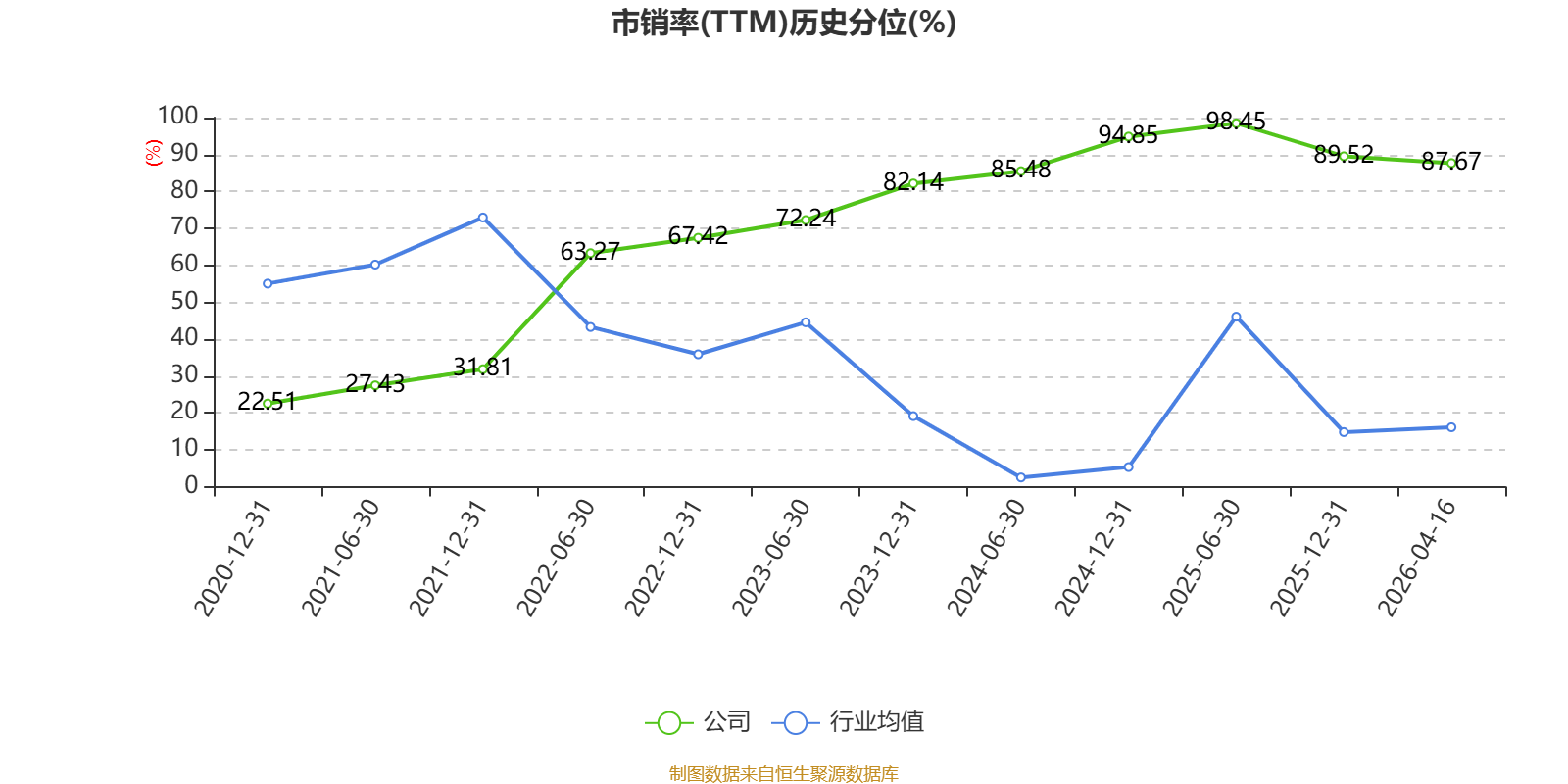 文中市盈率和市销率采用TTM方式,即以截至最近一期财报(含预报)12个月的数据计算。市净率采用LF方式,即以最近一期财报数据计算。三者的分位数计算区间均为公司上市以来至最新公告日。