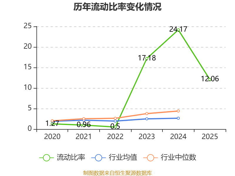 2025年,公司流动比率为12.06,速动比率为8.36。