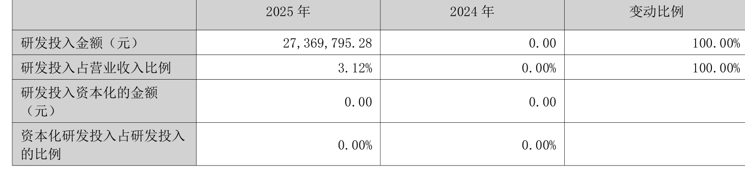 2025年全年,公司研发投入金额为2736.98万元;研发投入占营业收入比例为3.12%。此外,公司全年研发投入资本化率为0%。