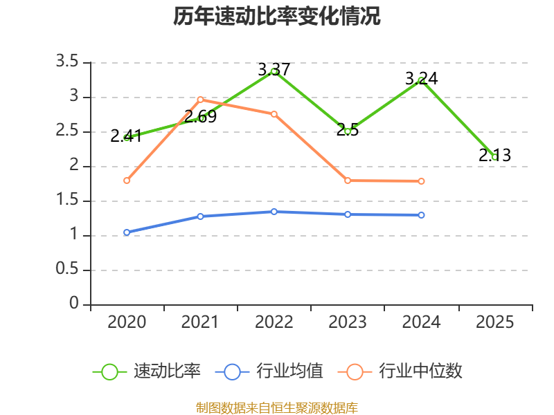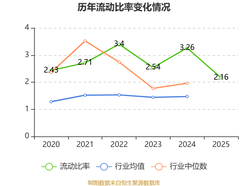 2025年,公司流动比率为2.16,速动比率为2.13。