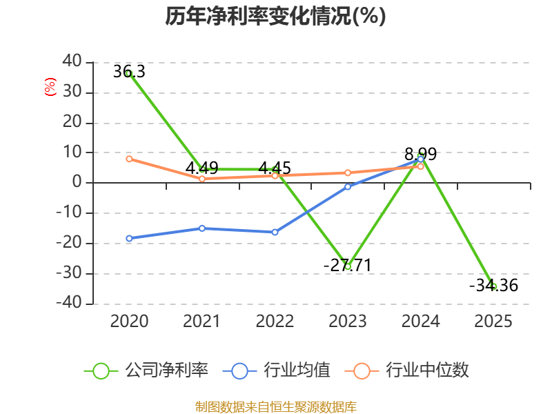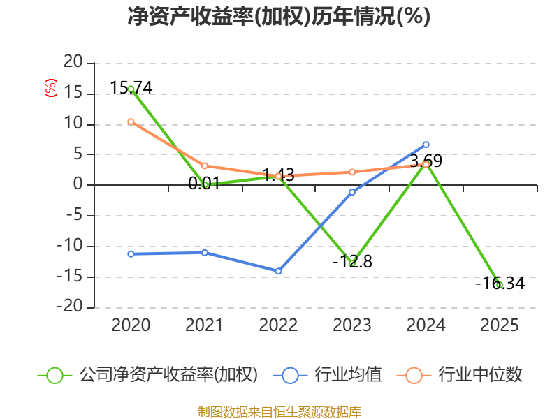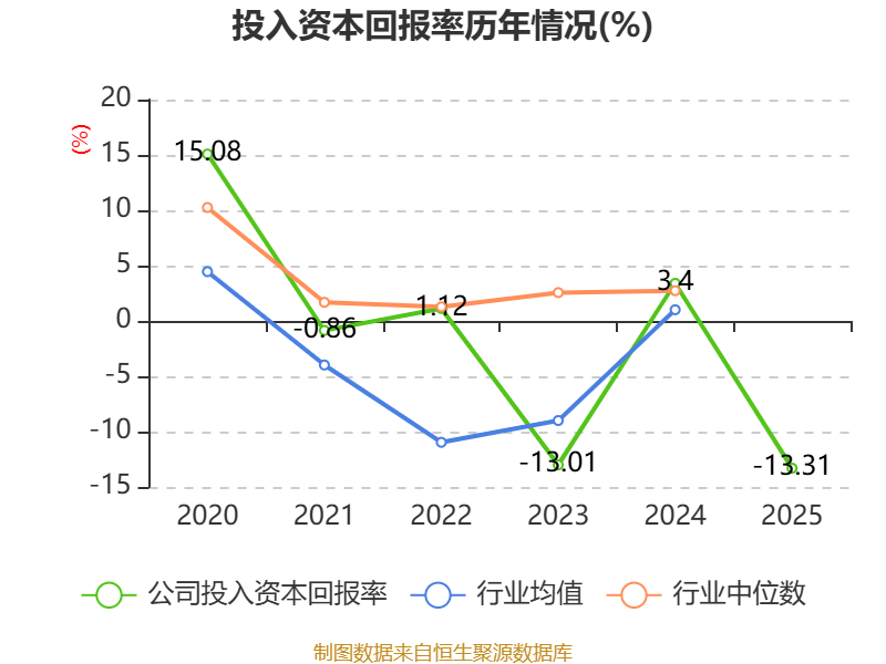数据显示,2025年公司加权平均净资产收益率为-16.34%,较上年同期下降20.03个百分点。公司2025年投入资本回报率为-13.31%,较上年同期下降16.71个百分点。
