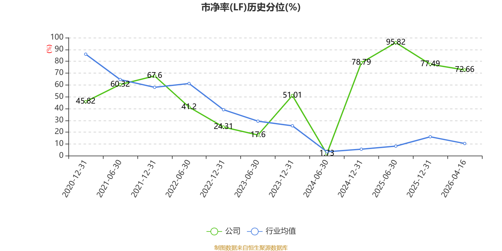 市盈率、市净率为负时,不显示当期分位数,会导致折线图中断。