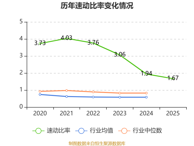 2025年,公司流动比率为1.99,速动比率为1.67。