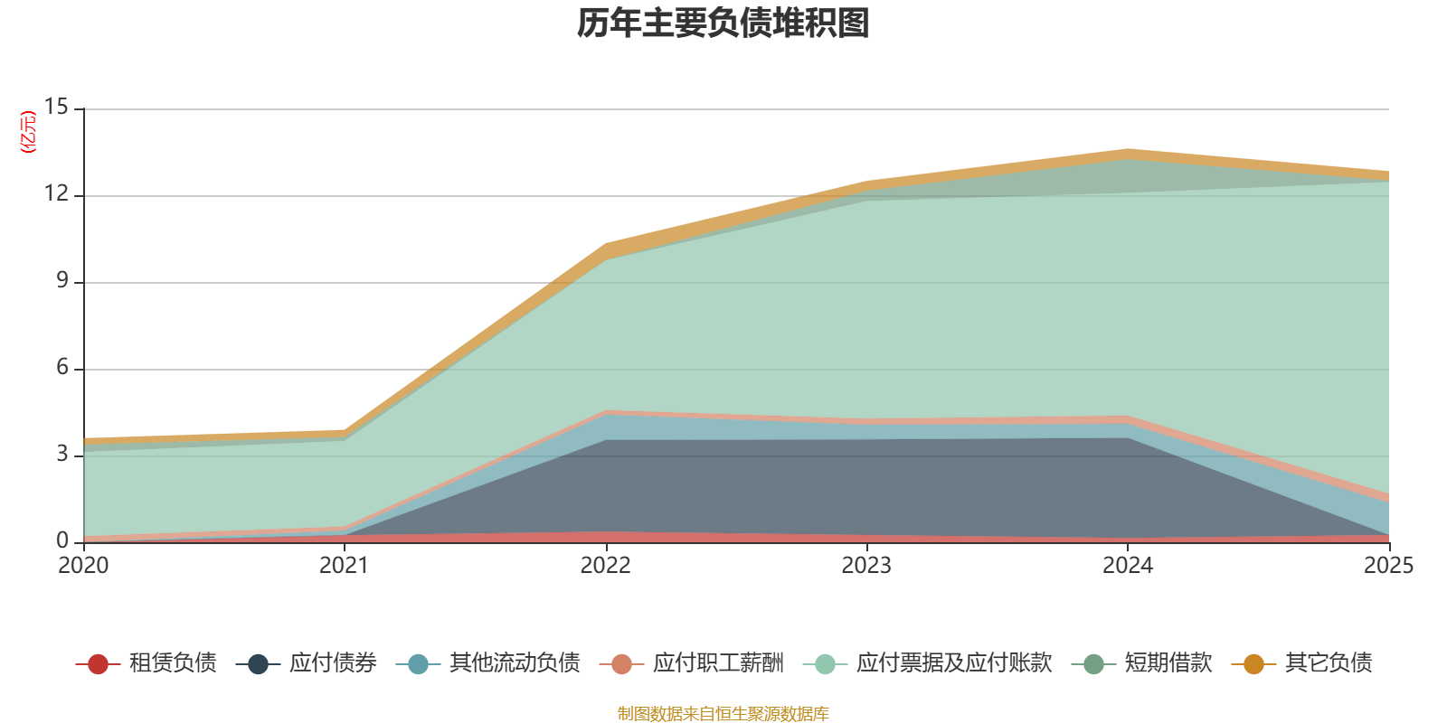 负债重大变化方面,截至2025年末,公司应付债券较上年末减少100%,占公司总资产比重下降11.45个百分点;应付票据及应付账款较上年末增加40.01%,占公司总资产比重上升5.98个百分点;短期借款较上年末减少95.69%,占公司总资产比重下降3.7个百分点;其他流动负债较上年末增加127.79%,占公司总资产比重上升1.64个百分点。