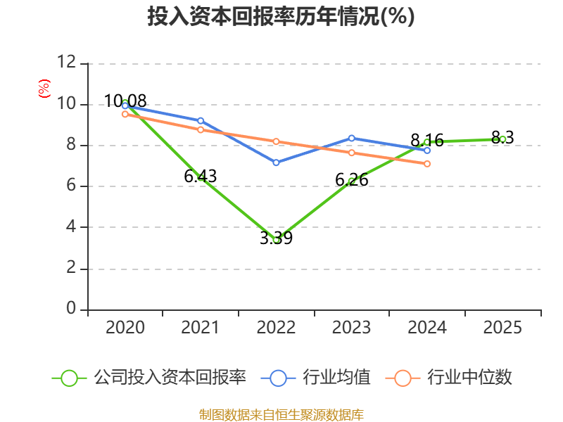 数据显示,2025年公司加权平均净资产收益率为9.34%,较上年同期下降2.01个百分点。公司2025年投入资本回报率为8.3%,较上年同期上升0.14个百分点。