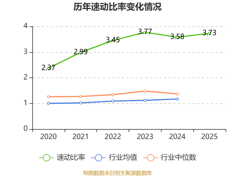 2025年,公司流动比率为4.6,速动比率为3.73。