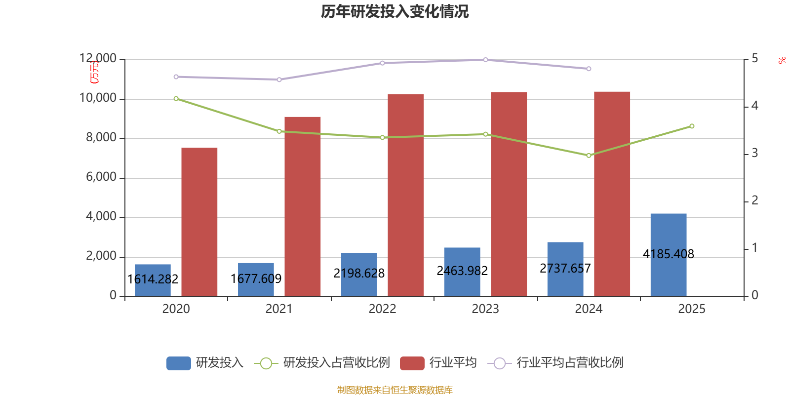2025年全年,公司研发投入金额为4185.41万元,同比增长52.88%;研发投入占营业收入比例为3.59%,相比上年同期上升0.62个百分点。此外,公司全年研发投入资本化率为0%。