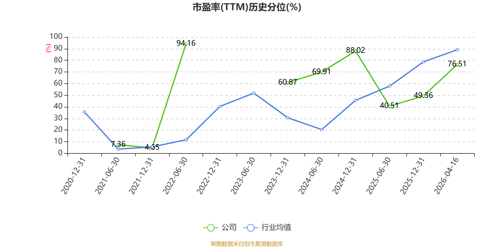 市盈率、市净率为负时,不显示当期分位数,会导致折线图中断。
