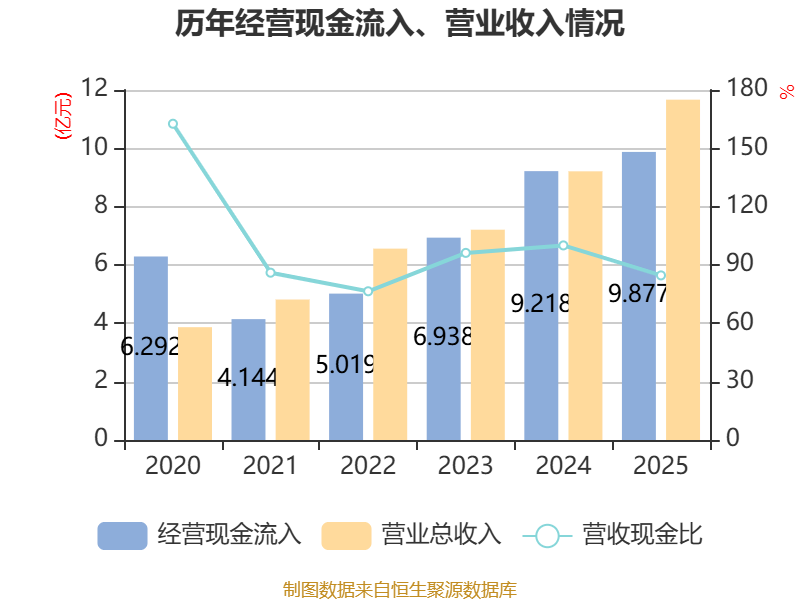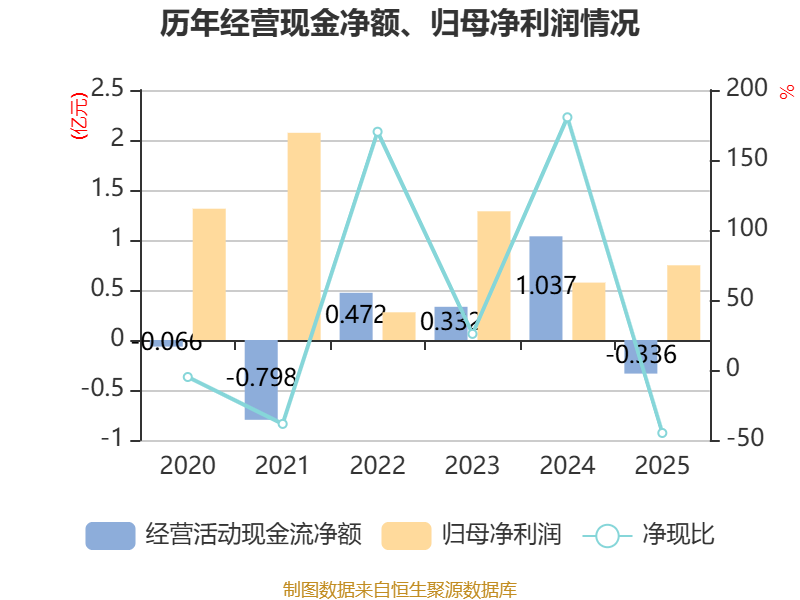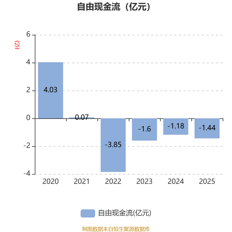 截至2025年,公司经营活动现金流净额为-3359.5万元,同比减少1.37亿元;筹资活动现金流净额2546.86万元,同比减少3234.3万元;投资活动现金流净额-3179.57万元,上年同期为-1.26亿元。