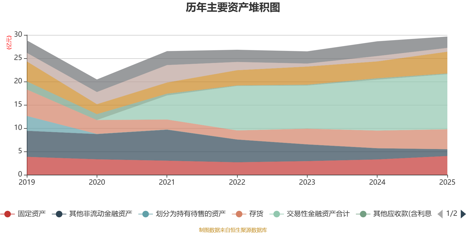 资产重大变化方面,截至2025年末,公司其他非流动金融资产较上年末减少40.08%,占公司总资产比重下降3.54个百分点;应收票据及应收账款较上年末增加29.36%,占公司总资产比重上升3.14个百分点;固定资产较上年末增加22.84%,占公司总资产比重上升2.13个百分点;交易性金融资产合计较上年末增加8.29%,占公司总资产比重上升1.74个百分点。
