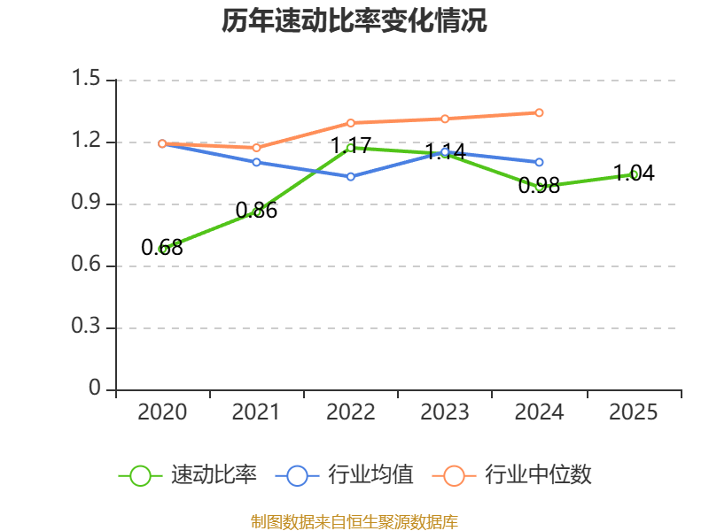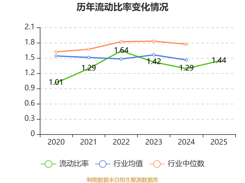 2025年,公司流动比率为1.44,速动比率为1.04。