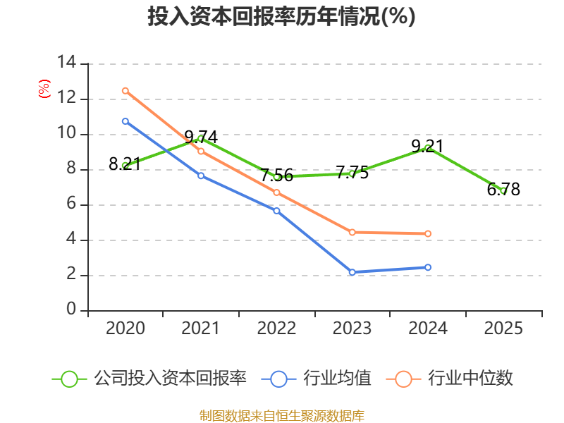 数据显示,2025年公司加权平均净资产收益率为10.47%,较上年同期下降0.97个百分点。公司2025年投入资本回报率为6.78%,较上年同期下降2.43个百分点。