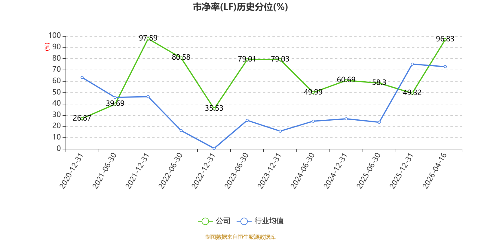 市盈率、市净率为负时,不显示当期分位数,会导致折线图中断。