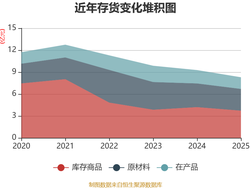 从存货变动来看,截至2025年末,公司存货账面价值为8.29亿元,占净资产的6.75%,较上年末减少9774.92万元。其中,存货跌价准备为7.5亿元,计提比例为47.5%。
