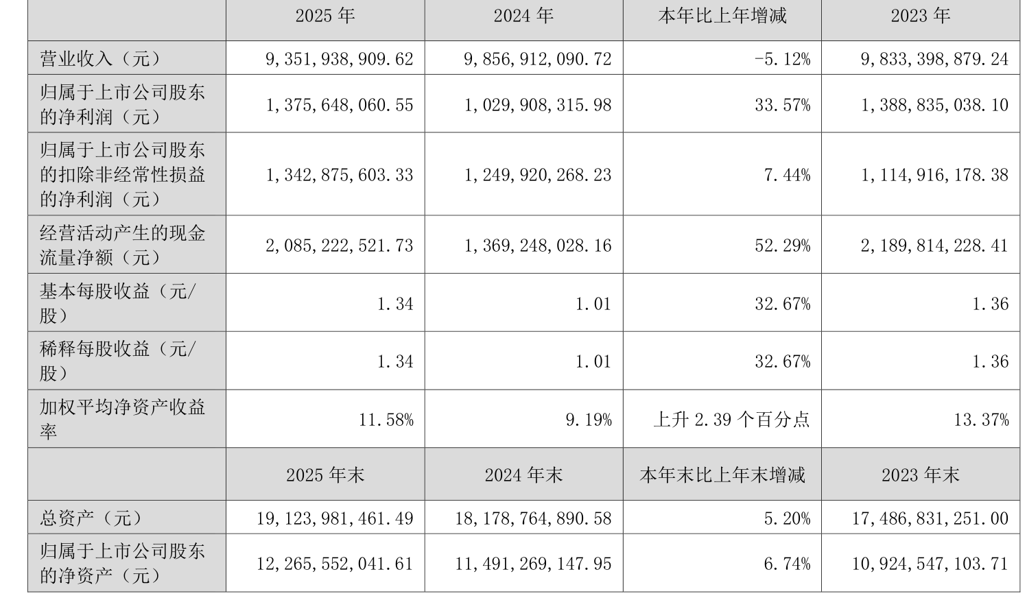 数据显示,2025年公司加权平均净资产收益率为11.58%,较上年同期上升2.39个百分点。公司2025年投入资本回报率为10.33%,较上年同期上升2.35个百分点。
