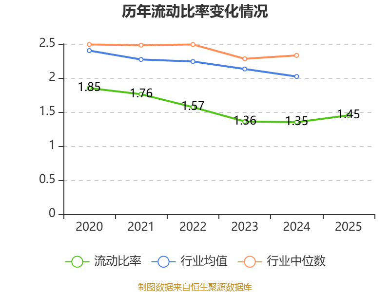 2025年,公司流动比率为1.45,速动比率为1.32。