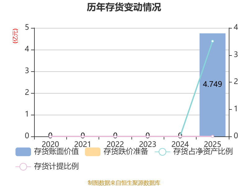 从存货变动来看,截至2025年末,公司存货账面价值为4.75亿元,占净资产的3.51%,较上年末基本不变。公司本期没有计提存货跌价准备。