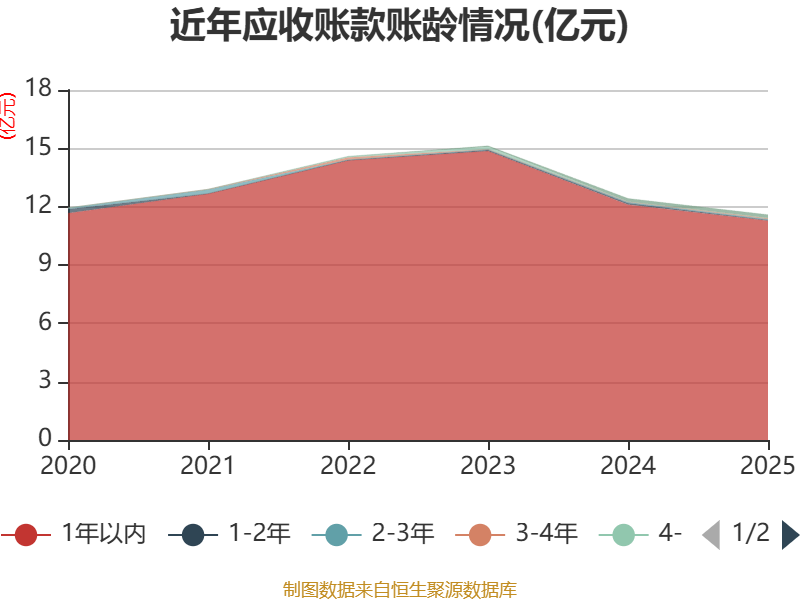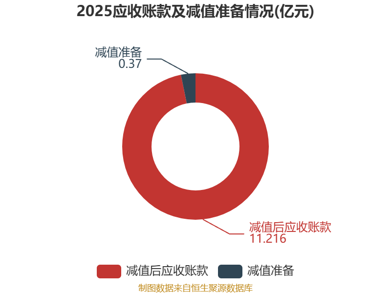 从应收账款账龄结构来看,截至2025年末,公司账龄在1年以内的应收账款余额为11.28亿元,较上年末下降8245.49万元,占应收账款总额比例为97.35%,较上年末下降0.09个百分点。