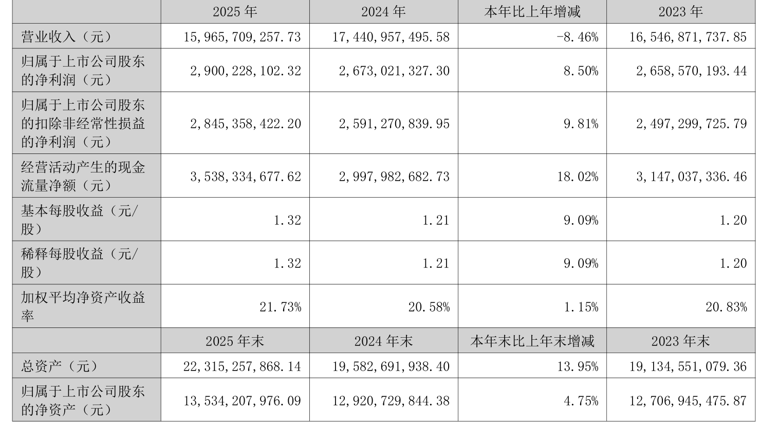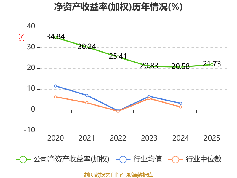 数据显示,2025年公司加权平均净资产收益率为21.73%,较上年同期上升1.15个百分点。公司2025年投入资本回报率为16.59%,较上年同期上升0.15个百分点。