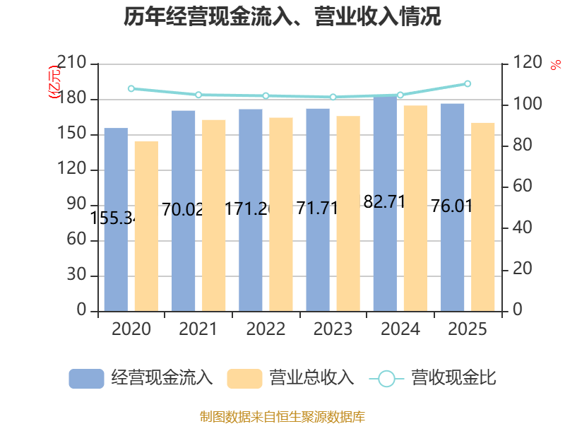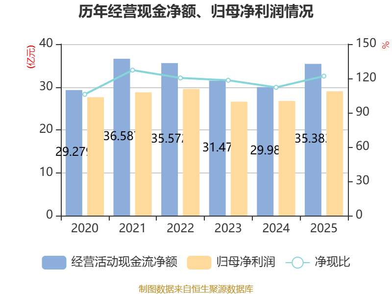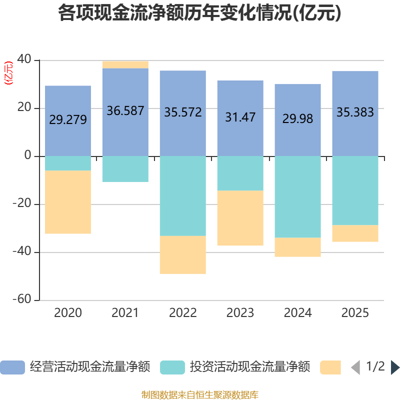 截至2025年,公司经营活动现金流净额为35.38亿元,同比增长18.02%;筹资活动现金流净额-6.91亿元,同比增加1.01亿元;投资活动现金流净额-28.83亿元,上年同期为-34.08亿元。