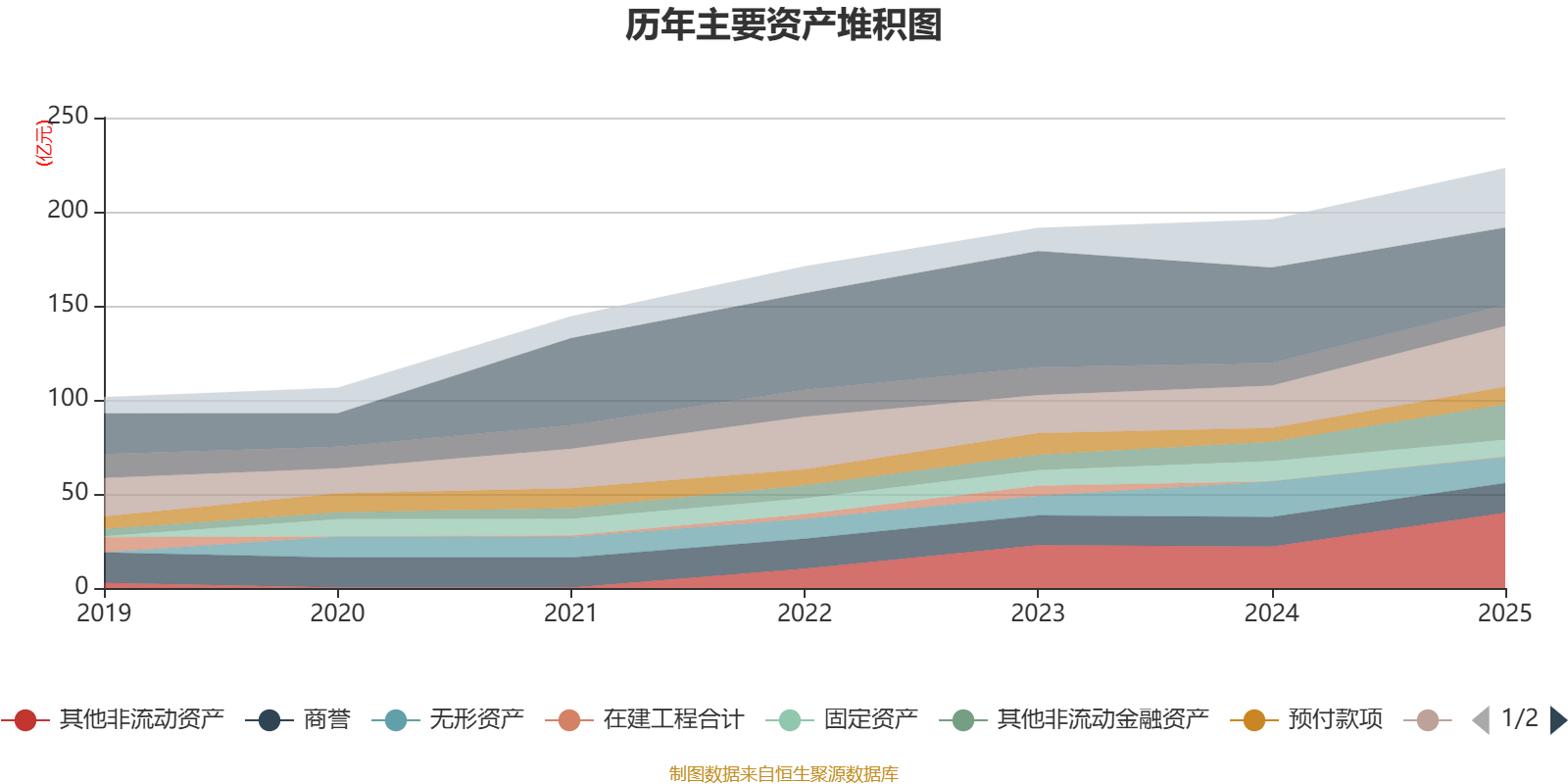 资产重大变化方面,截至2025年末,公司货币资金较上年末减少18.49%,占公司总资产比重下降7.35个百分点;其他非流动资产较上年末增加81.9%,占公司总资产比重上升6.69个百分点;无形资产较上年末减少26.68%,占公司总资产比重下降3.44个百分点;其他非流动金融资产较上年末增加81.23%,占公司总资产比重上升3.13个百分点。