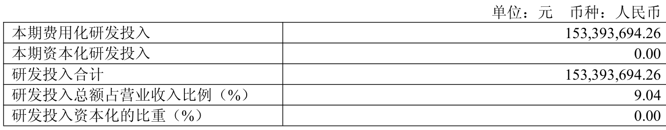 2025年全年,公司研发投入金额为1.53亿元,同比增长4.82%;研发投入占营业收入比例为9.04%,相比上年同期下降0.88个百分点。此外,公司全年研发投入资本化率为0%。