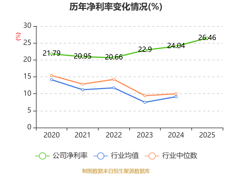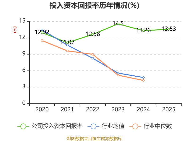 数据显示,2025年公司加权平均净资产收益率为22.05%,较上年同期上升4.7个百分点。公司2025年投入资本回报率为13.53%,较上年同期上升0.27个百分点。