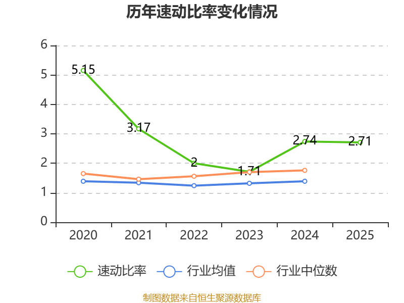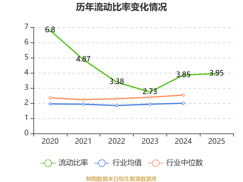 2025年,公司流动比率为3.95,速动比率为2.71。