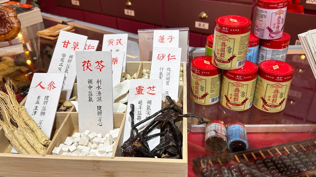 人参、茯苓、甘草、当归……十余味中药材在小主控股的“港风国医馆”展台排开展示。这家来自香港的膳食营养品牌,已是消博会的“回头客”。