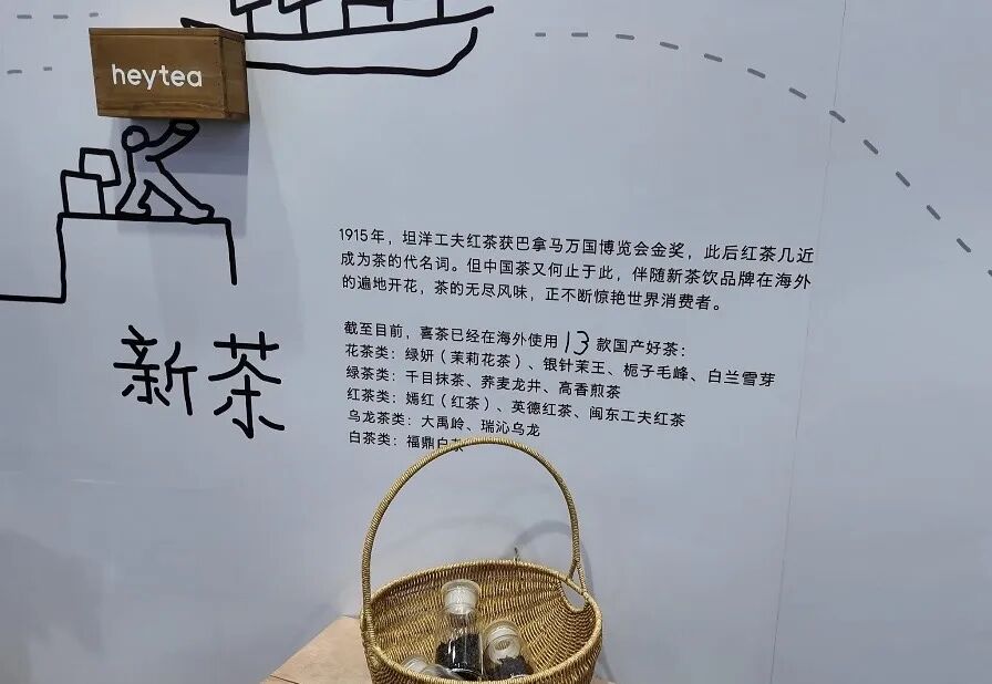 今年消博会上,喜茶展台以手绘航线、中国帆船等元素致敬“海上茶路”,直观呈现从茶叶到水果,“万物可入茶”的理念,并将海外限定产品“栀子1”带来现场品鉴。这款喜茶在美国纽约时代广场门店主推的纯茶,以乐山栀子为茶底,用自研茶咖一体机萃取,借助技术手段实现产品出海风味稳定。