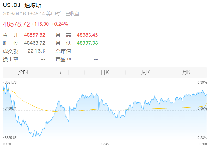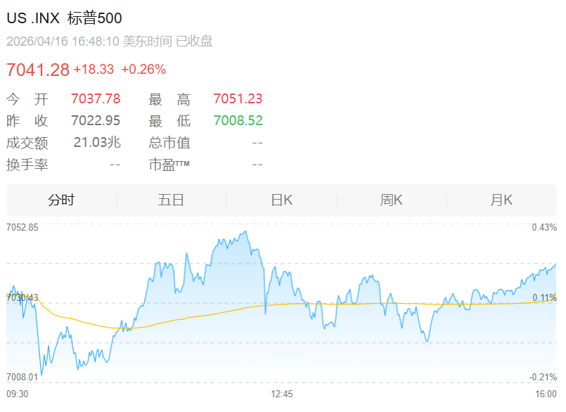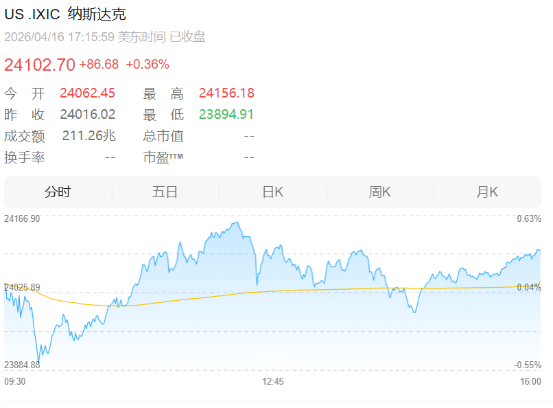 【大河财立方消息】当地时间4月16日,随着以黎临时停火协议达成,以及美伊下次会谈消息接连释放,美股再度集体收高,纳指取得日线12连阳,标普500指数同样续历史新高。