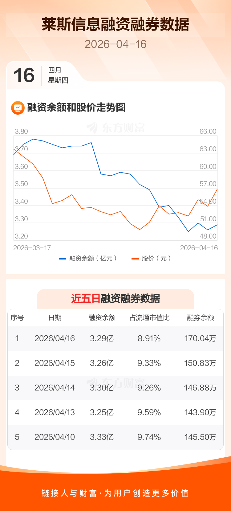 交易所最新数据显示,莱斯信息于2026年4月16日获融资买入2717.41万元,融资偿还2436.36万元,当日融资净买入281.06万元。目前,该股融资余额3.29亿,占流通市值比例为8.91%。