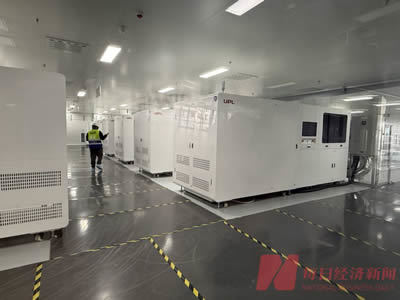 隔着生产车间的玻璃可以看到,数台印有“UPL”字样的大型设备整齐列阵。每经记者看到的设备显示屏处于黑屏状态。生产车间内,有头戴安全帽的工作人员正在设备间穿梭。