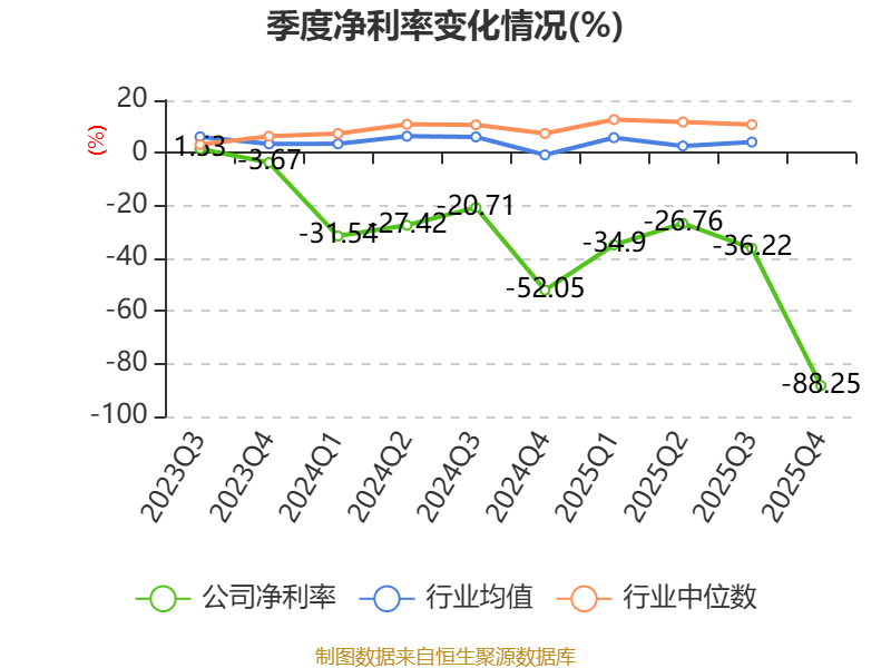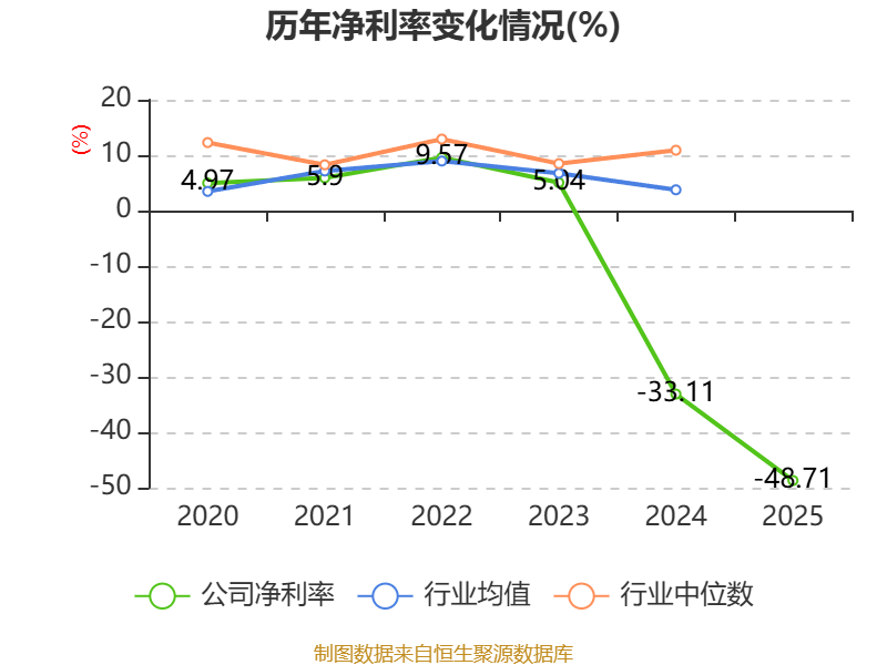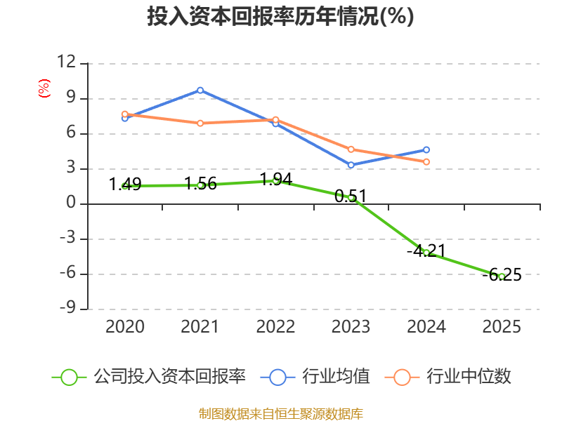 数据显示,2025年公司加权平均净资产收益率为-12.68%,较上年同期下降5.61个百分点。公司2025年投入资本回报率为-6.25%,较上年同期下降2.04个百分点。