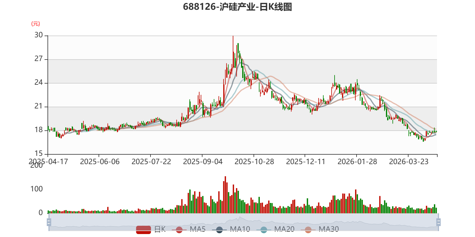 以4月16日收盘价计算,沪硅产业目前市盈率(TTM)约为-39.13倍,市净率(LF)约3.49倍,市销率(TTM)约15.88倍。