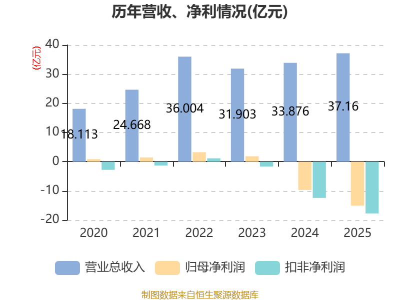 中证智能财讯沪硅产业(688126)4月17日披露2025年年度报告。2025年,公司实现营业总收入37.16亿元,同比增长9.69%;归母净利润亏损15.08亿元,上年同期亏损9.71亿元;扣非净利润亏损17.74亿元,上年同期亏损12.43亿元;经营活动产生的现金流量净额为-5.59亿元,上年同期为-7.88亿元;报告期内,沪硅产业基本每股收益为-0.539元,加权平均净资产收益率为-12.68%。