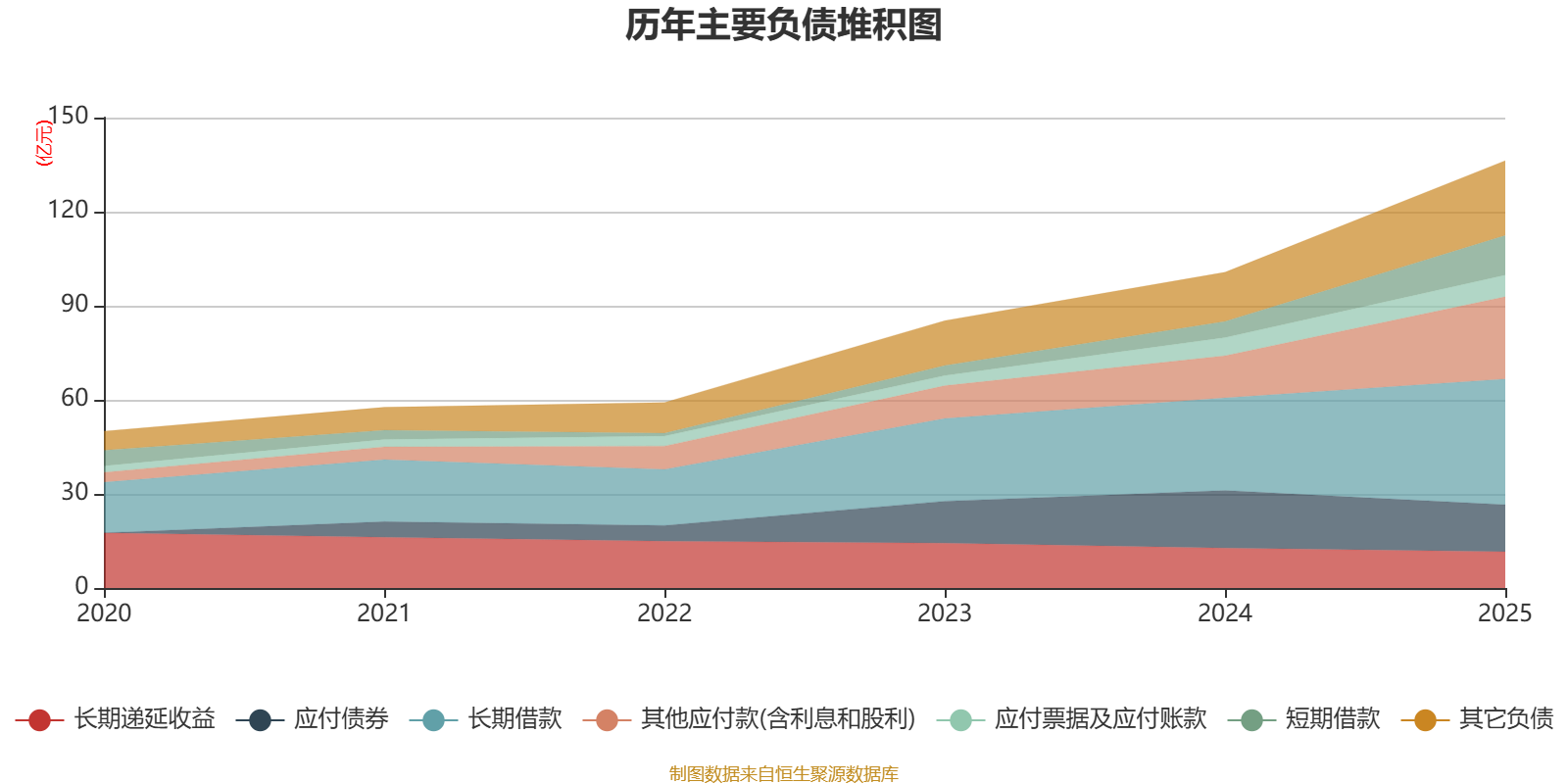 负债重大变化方面,截至2025年末,公司其他应付款(含利息和股利)较上年末增加95.48%,占公司总资产比重上升3.18个百分点;短期借款较上年末增加142.93%,占公司总资产比重上升1.97个百分点;应付债券较上年末减少18.53%,占公司总资产比重下降1.85个百分点;长期借款较上年末增加35.61%,占公司总资产比重上升1.77个百分点。