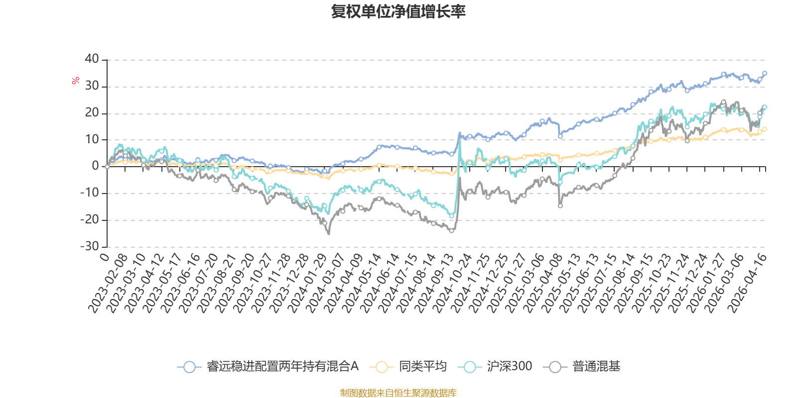 截至4月16日,睿远稳进配置两年持有混合A近三个月复权单位净值增长率为1.38%,位于同类可比基金143/629;近半年复权单位净值增长率为4.63%,位于同类可比基金102/629;近一年复权单位净值增长率为19.37%,位于同类可比基金48/629;近三年复权单位净值增长率为31.05%,位于同类可比基金20/581。