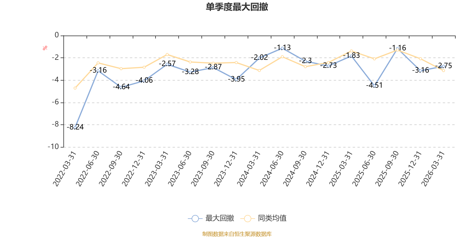 截至4月16日,基金近三年最大回撤为6.81%,同类可比基金排名306/534。单季度最大回撤出现在2022年一季度,为8.24%。
