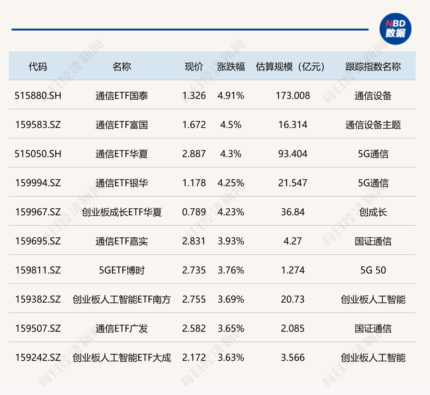 ETF今日收评 | 通信ETF涨超4%,医药相关ETF跌超2%