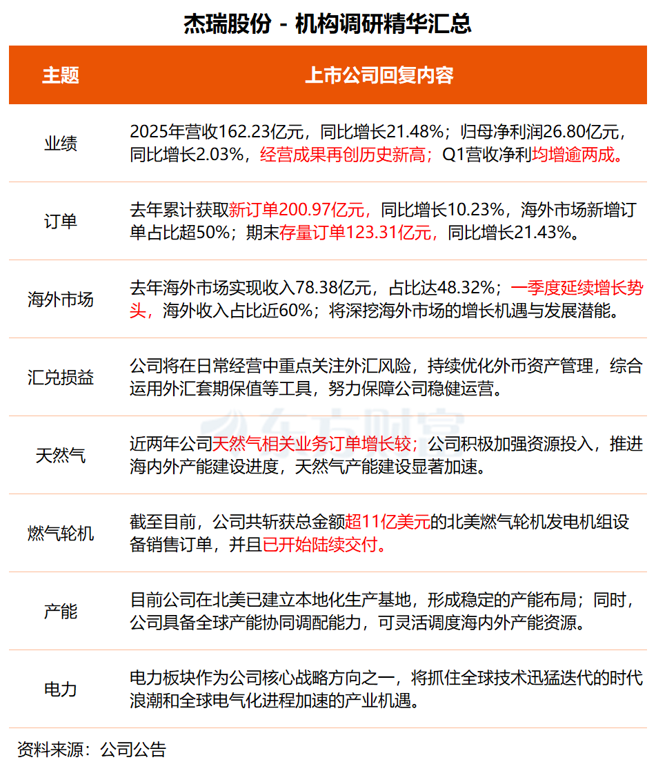 在交流中,杰瑞股份透露,截至目前,公司共斩获总金额超11亿美元的北美燃气轮机发电机组设备销售订单,并且已经开始陆续交付。