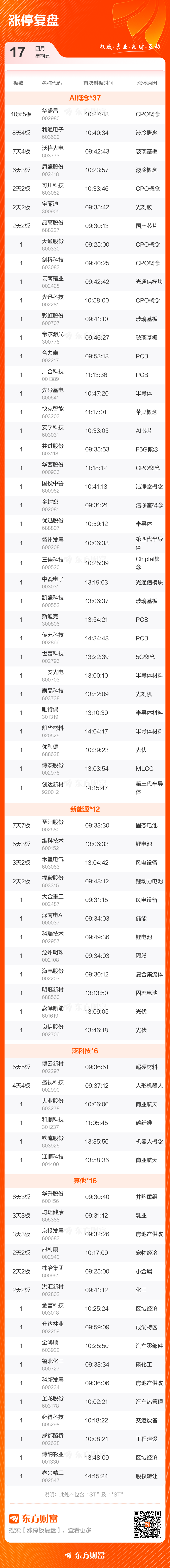 4月17日涨停复盘:76只股涨停 圣阳股份7连板